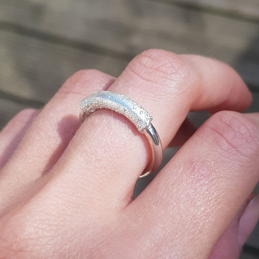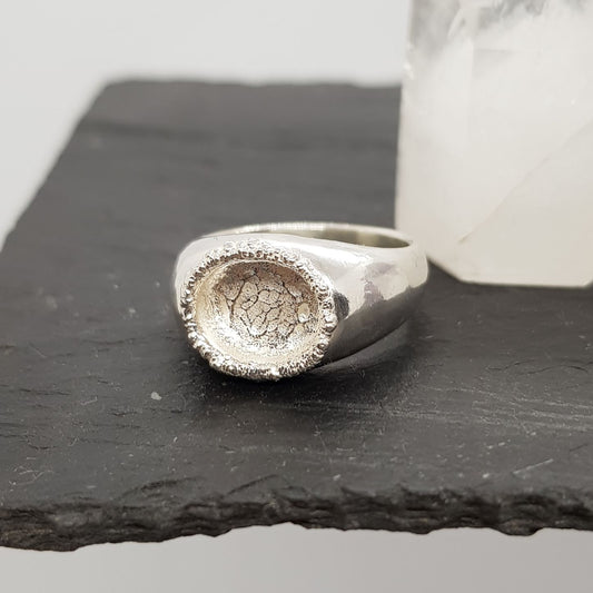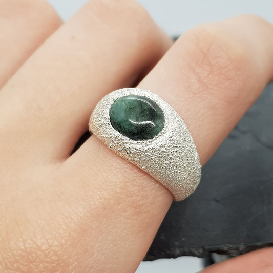 Textured crevice-like rings and necklaces with raw and cut gemstones