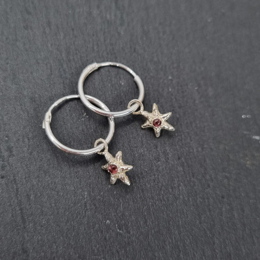 Tiny Molten Star Hoop Earrings