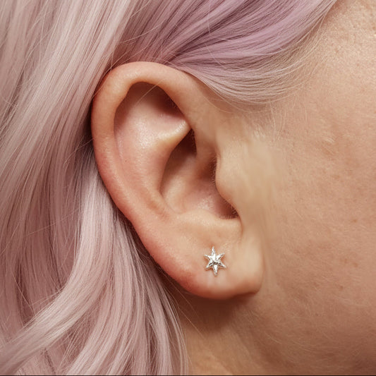 Tiny Molten Star Stud Earrings