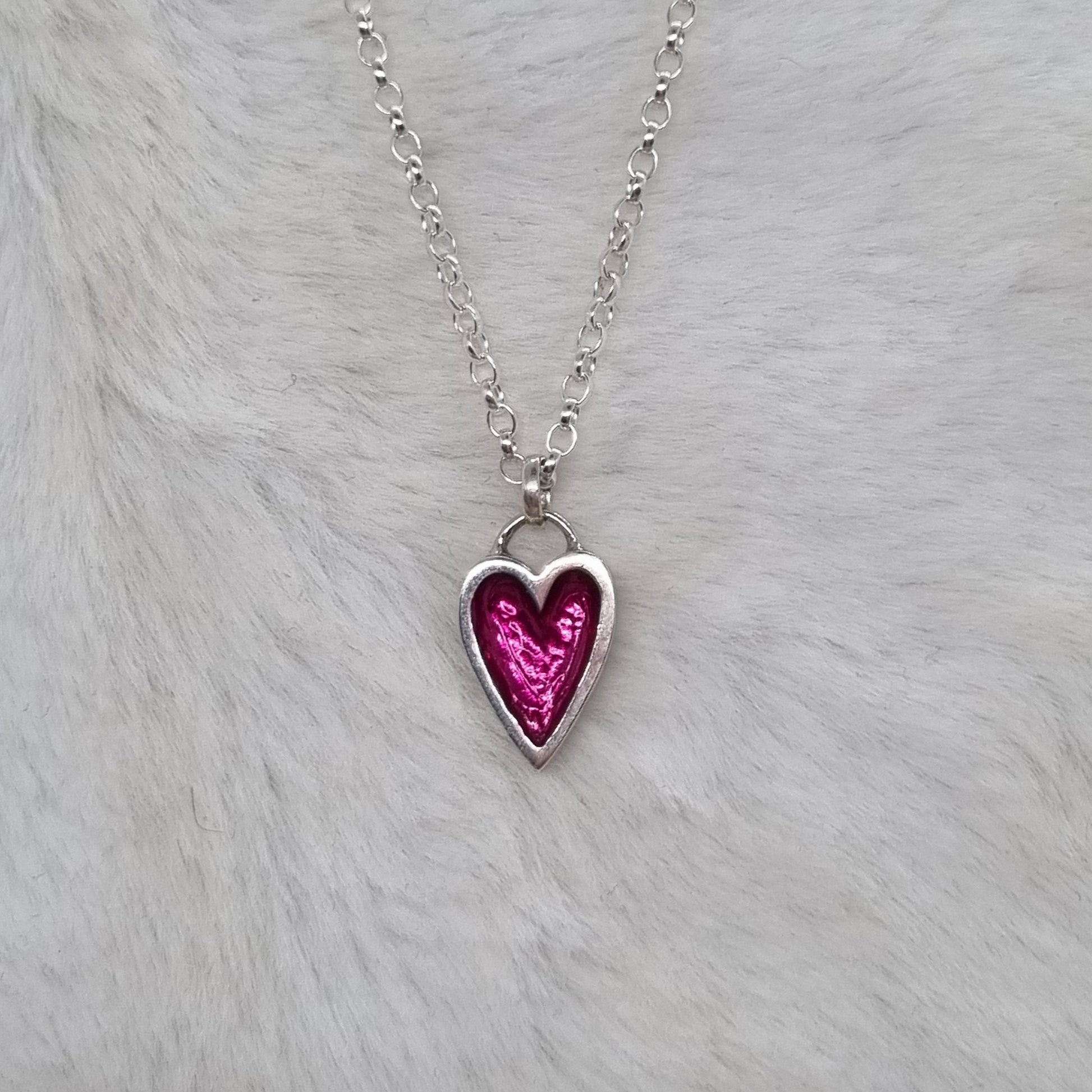 This heart pendant has a concave heart which has been nano-ceramic coated pink. Comes on a 45/50cm sterling silver chain.