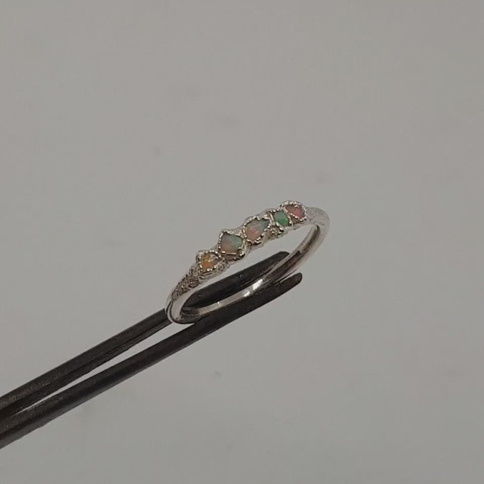 Five tiny carefully selected beautiful raw opals encased in uniquely textured solid silver.